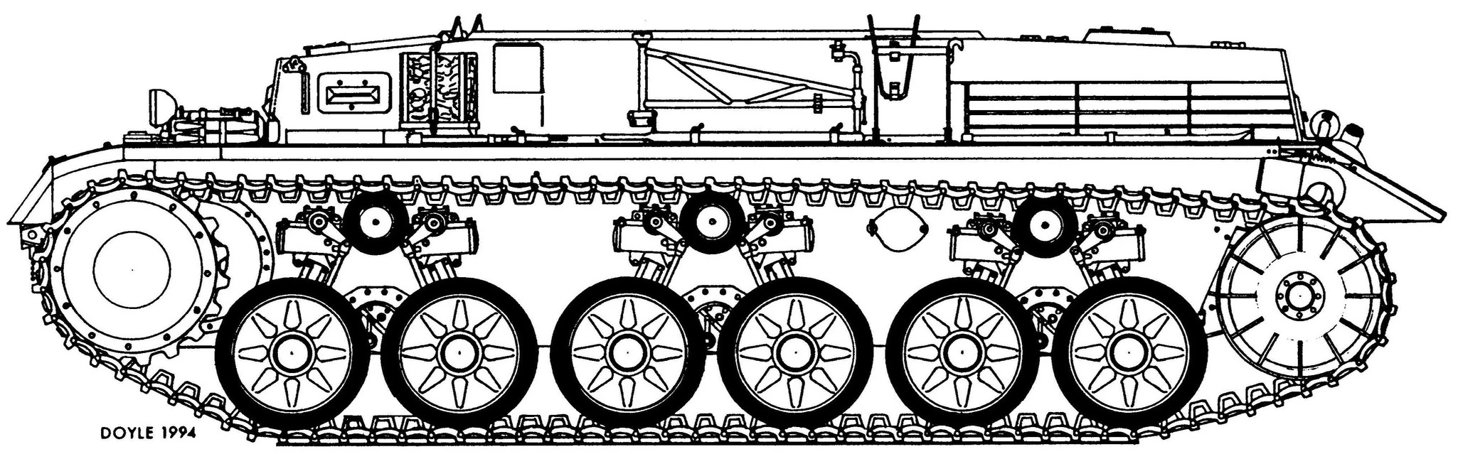 On 13 April 1934, Krupp's proposal was completed. There were two proposals for armour and thus weight, a 17.2 ton setup with 20 and 14mm armour, and a 18.5 ton setup with 30 and 20mm armour. A turret fitting a short 75mm cannon and a coaxial machine gun utilizing components from the Z.W. was proposed. The electric turret drive from the Neubau-Panzerkampfwagen IV (3,7cm & 7,5cm) was also to be used. Two suspension types were proposed, either eight or six roadwheels mounted in pairs.
