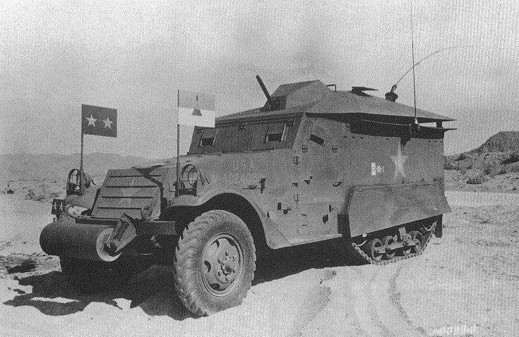 The conversion was undertaken at the Desert Training Center near Indio, California in 1942. At the time, Patton was in command of the First Armored Corp. The conversion features armour over the previously open rear, and skirting over the top half of the tracks. The .50 caliber machine gun was replaced with a .30 caliber machine gun in a ball mount. Two flags were fitted to the front, and the vehicle had the identifier as HQ-1.