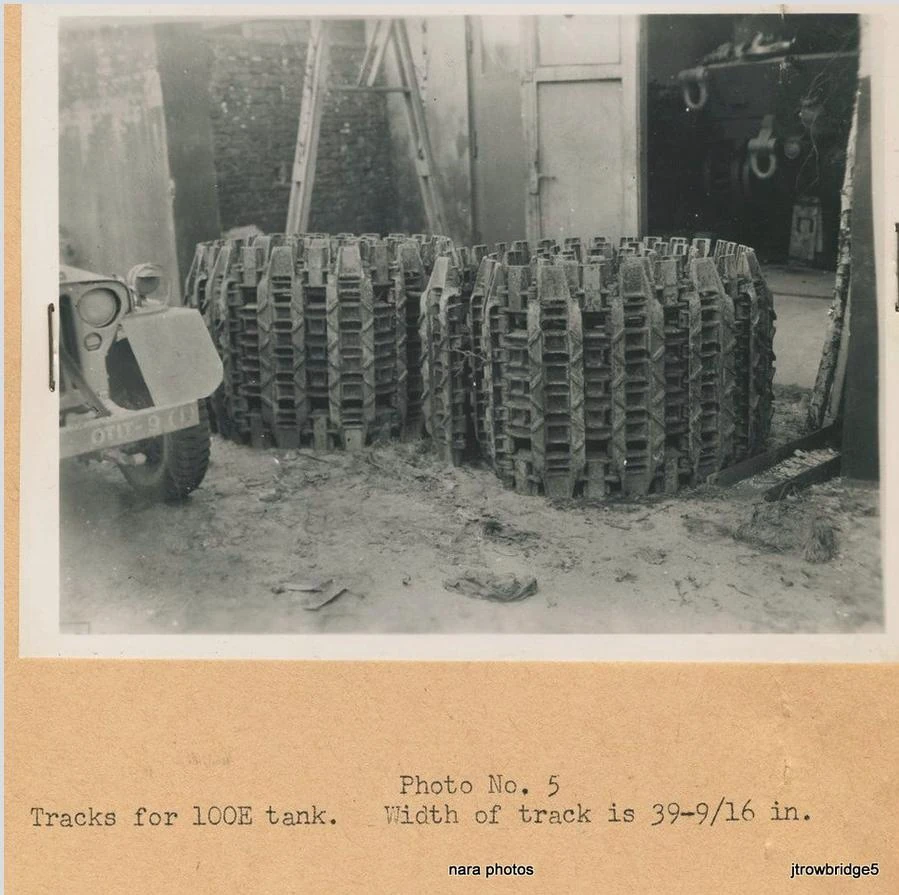 On 15 January 1945, a progress report of the E 100 that was being assembled was sent from Haustenbeck near Paderborn, to Wa Prüf 6 and Adler in Frankfurt. The report included 64 photographs of the E 100 trial vehicle in its incomplete state, each photograph had a caption explaining what was being shown and any notes. Larger photographs could not be taken as the construction of the vehicle was made in a small hall, with not enough room for full coverage photographs.