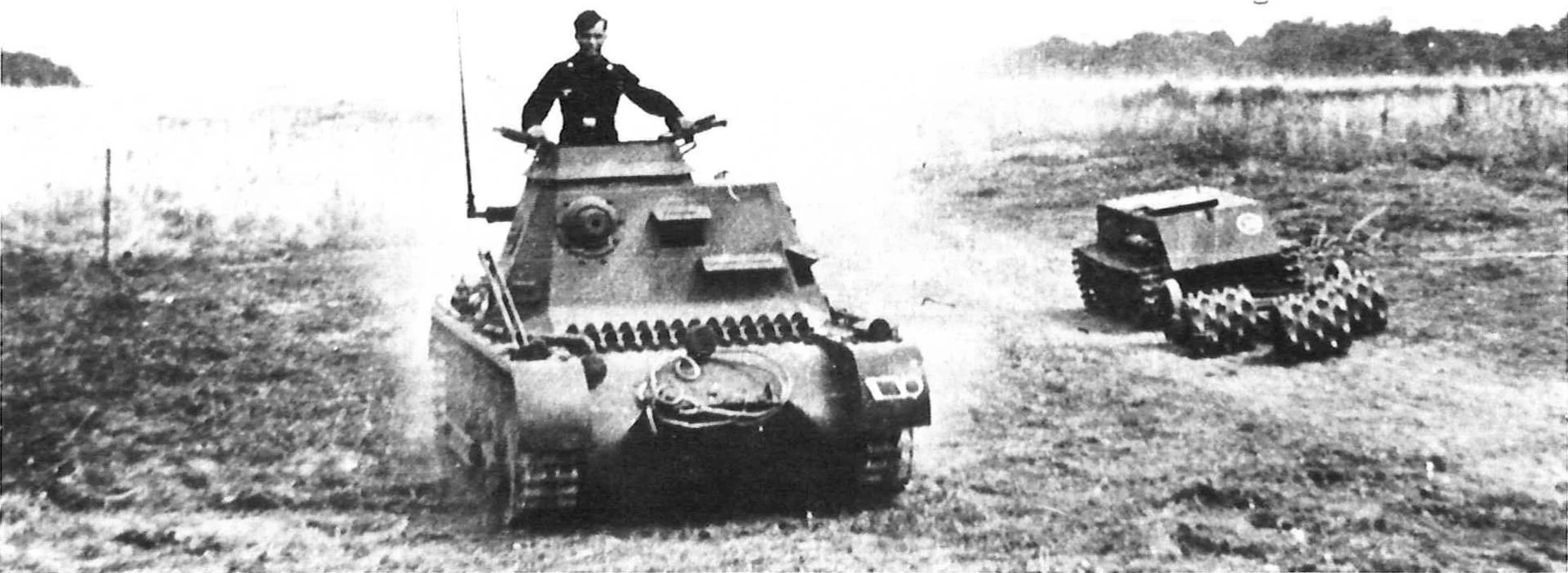 The B I towed a set of rollers, and was controlled remotely from kleiner Panzerbefehlswagen.
