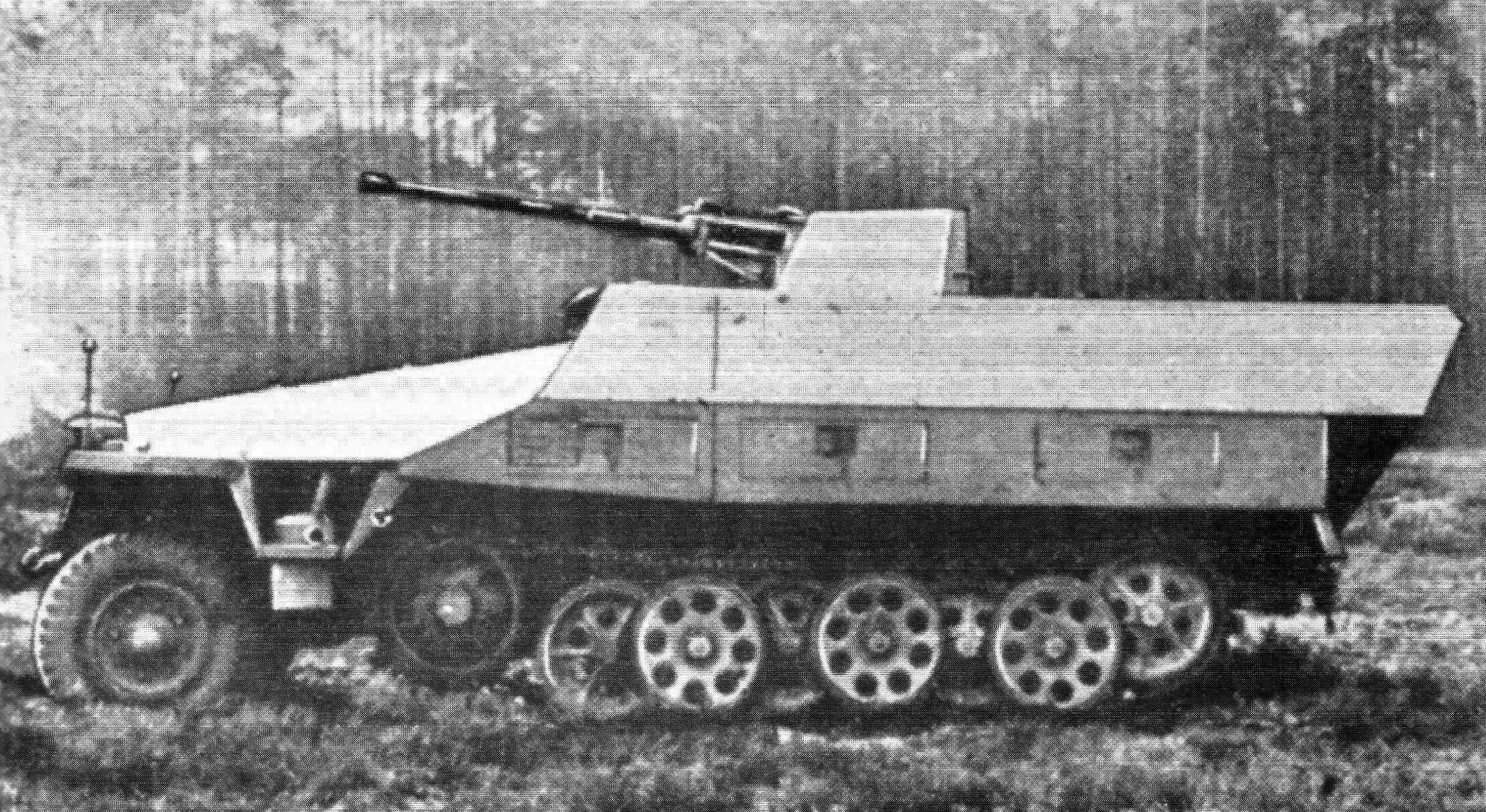 After the production of the mittlerer Schützenpanzerwagen (3,7cm Pak) ended, a new Zugführerwagen was required to fill the need. The 2cm Kw.K. 38 was chosen to replace the 37mm anti-tank gun, as it could be used against aircraft if the need arise, in addition to its automatic fire capability.